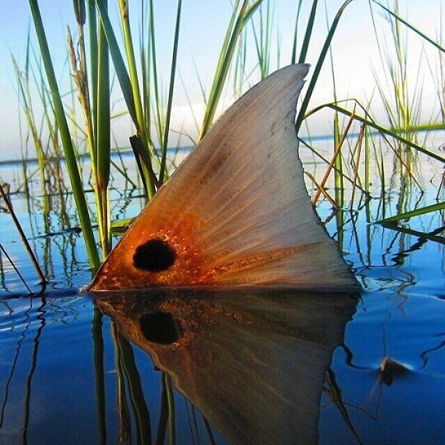 Redfish push shallow with the rising tide to nose through grass for crabs and shrimp. Look for: